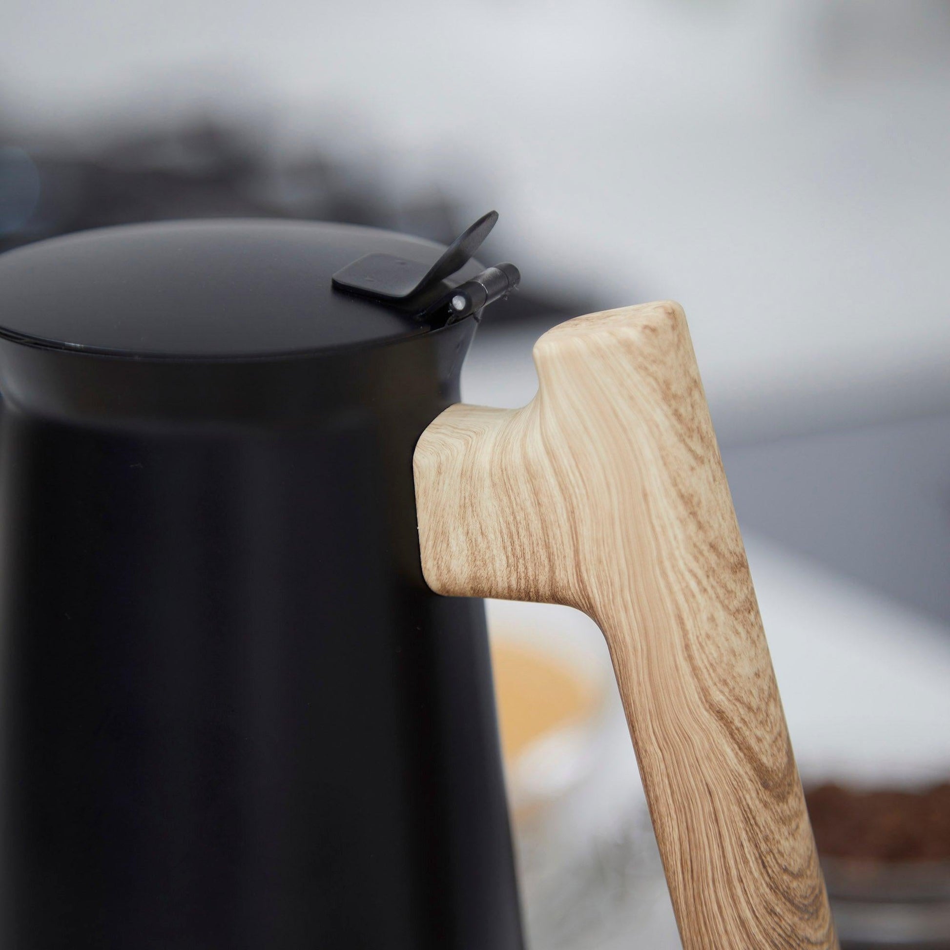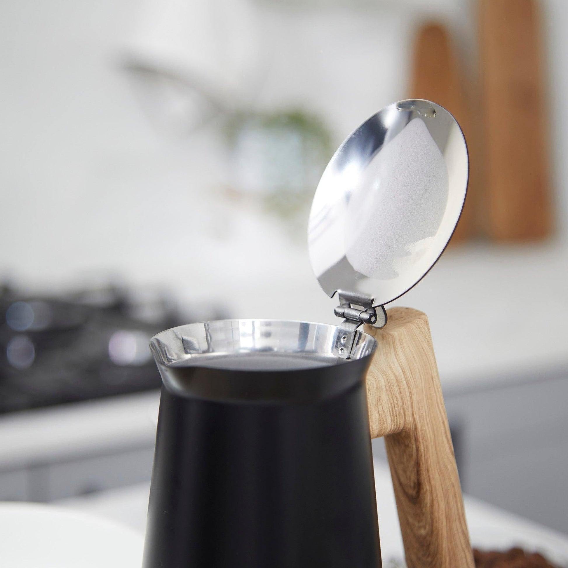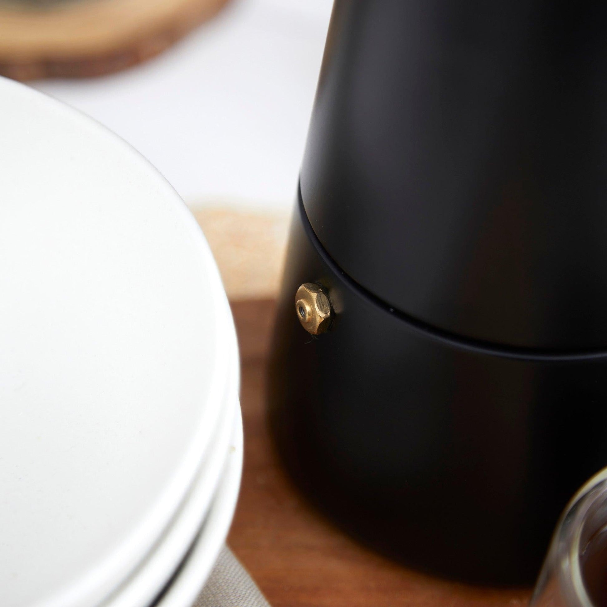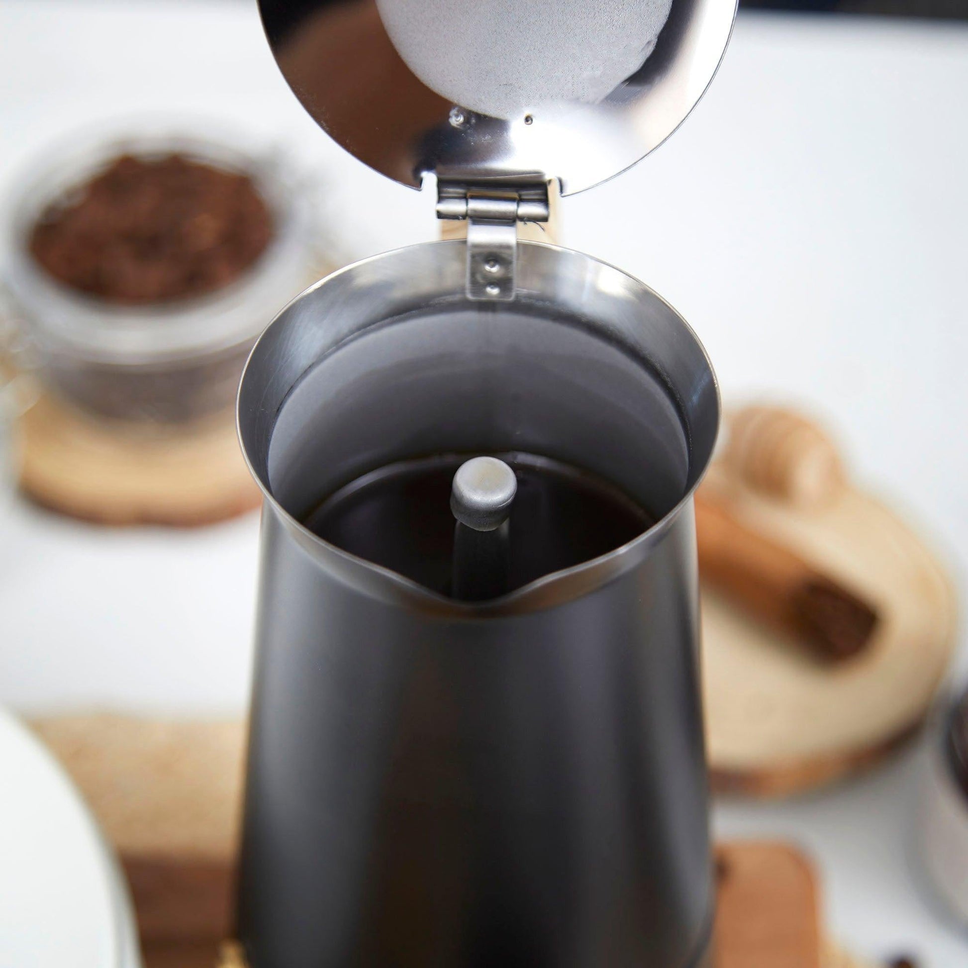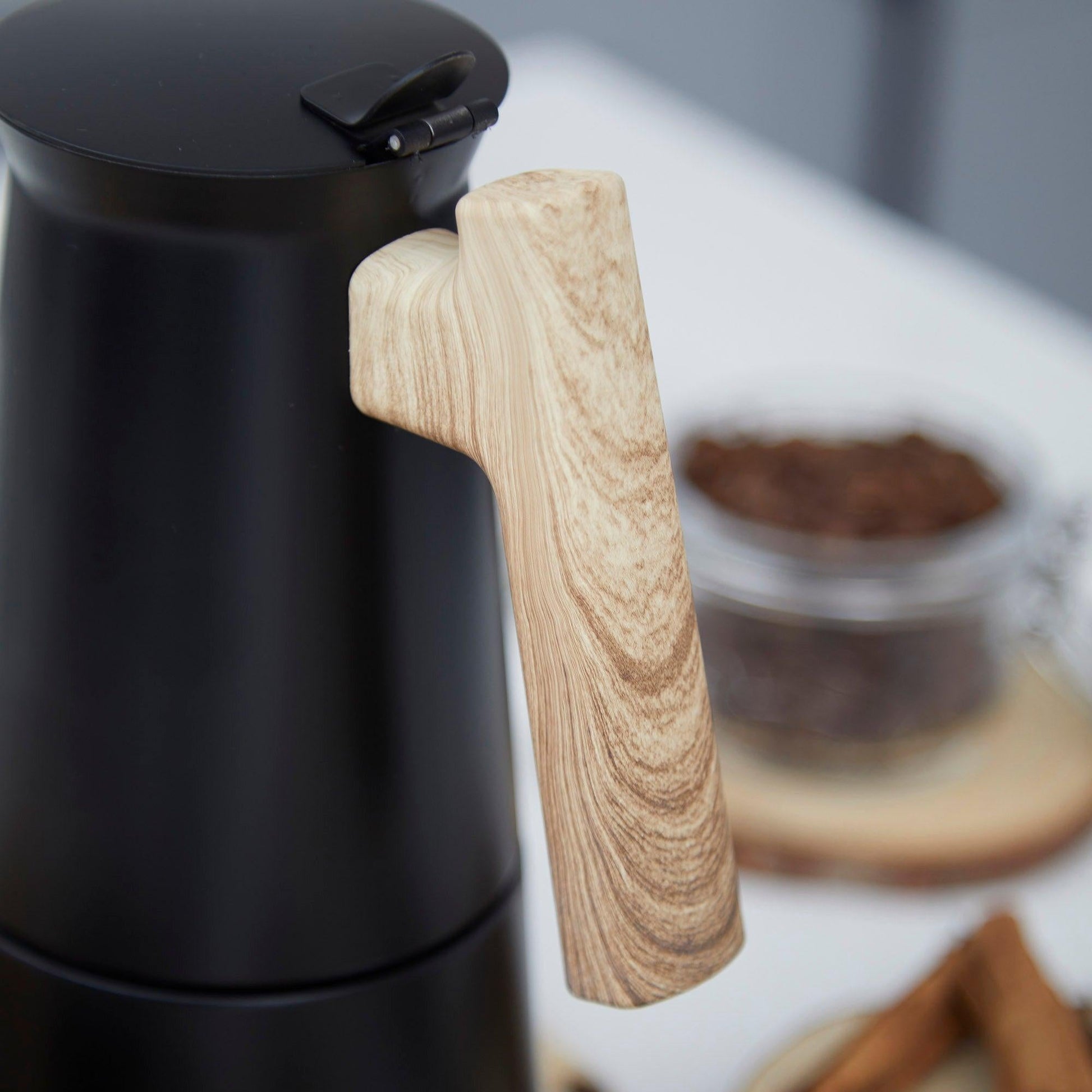 Eleva tu experiencia cafetera con esta elegante Cafetera Italiana 6 Tazas Coquinaria, diseñada para los verdaderos amantes del café. Su sofisticado acabado en negro mate complementado con cálidos detalles en madera aporta un toque distintivo y contemporáneo a cualquier cocina.