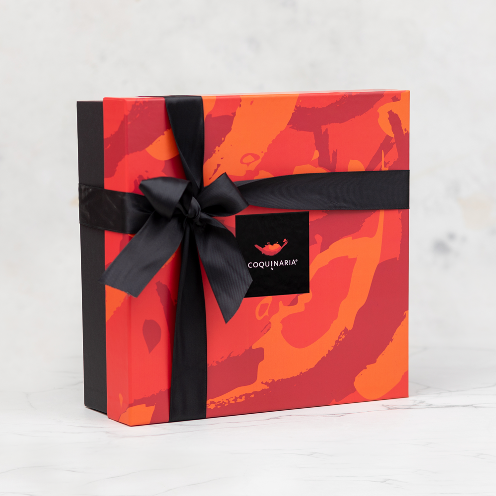 Caja dura carton piedra con base y tapa. Base color negro y tapa con diseño coquinaria. Imagina ese momento especial cuando entregas un regalo y ves la emoción en los ojos de quien lo recibe. Nuestras cajas de cartón no son solo un empaque, sino una experiencia: elegantes, resistentes y perfectas para sorprender con productos gourmet, accesorios únicos y detalles inolvidables. Diseñadas para realzar cualquier regalo personalizado a tu gusto, estas cajas transforman un simple presente en un gesto memorable, donde cada detalle cuenta y la presentación marca la diferencia.