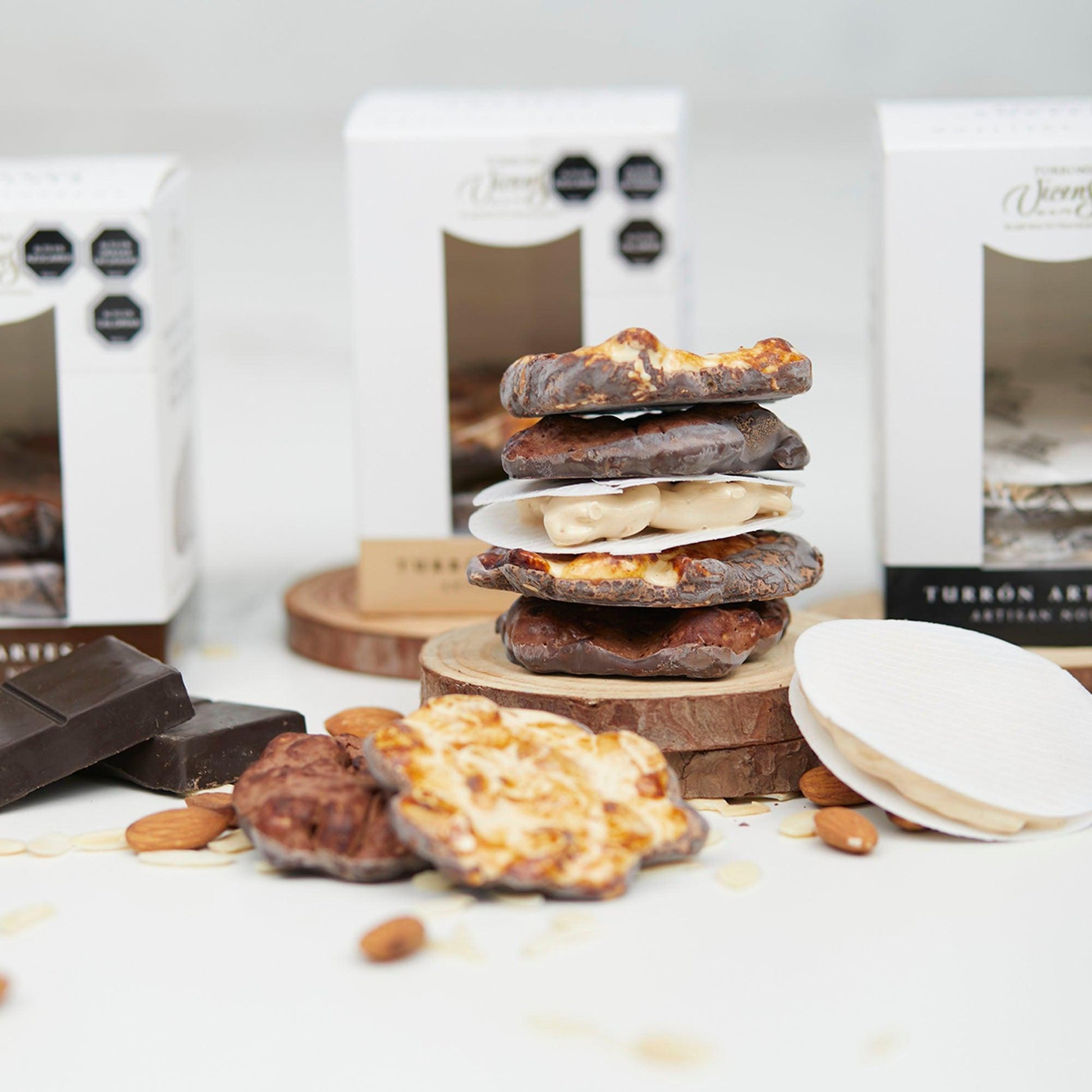 Su textura firme y su color crema evocan la calidez y autenticidad de lo hecho a mano, transportándote al corazón de la tradición mediterránea. Perfecto para compartir momentos especiales o regalar un pedacito de historia, estos turrones son el detalle que transforma lo cotidiano en extraordinario.