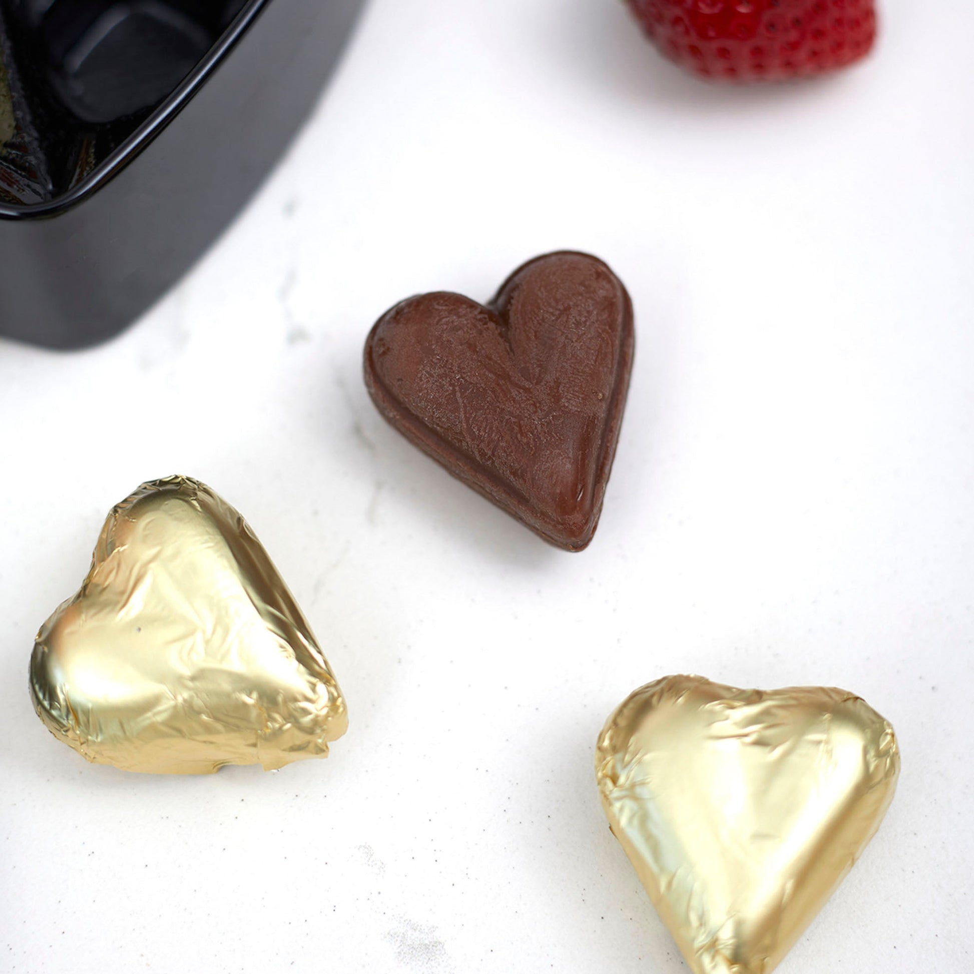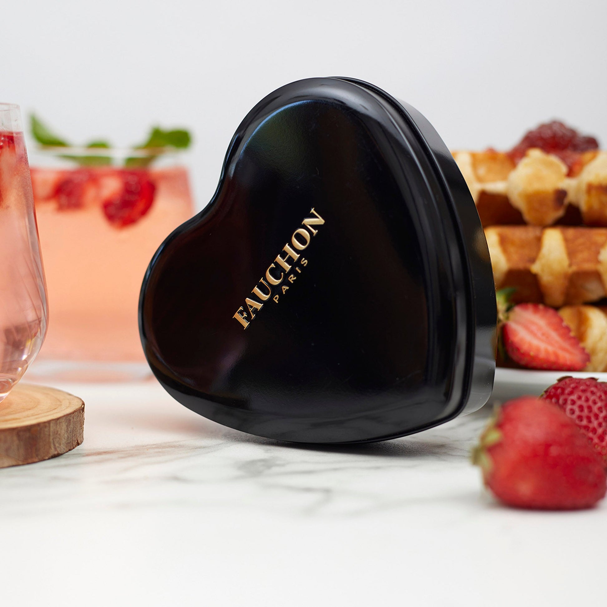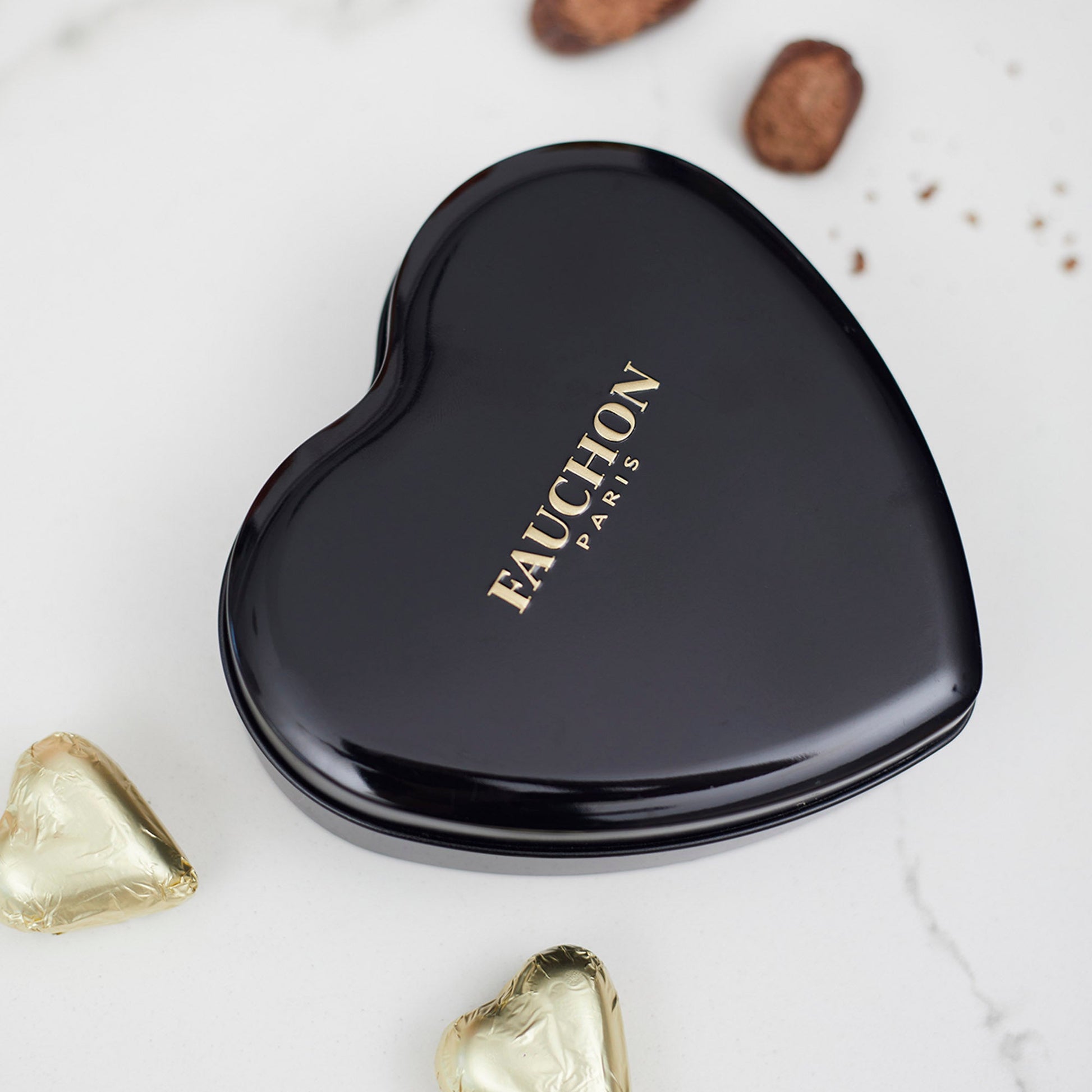Un deleite para los amantes del chocolate intenso. En su caja negra en forma de corazón, Fauchon resguarda siete delicados bombones de chocolate negro, con un relleno de crema de avellanas y cacao, acompañado de finos chips de crêpes de encaje crujiente. Cada pieza es una armonía de sabores y texturas, un tributo al savoir-faire francés que transforma un simple gesto en un momento inolvidable. El detalle ideal para sorprender con sofisticación y buen gusto.