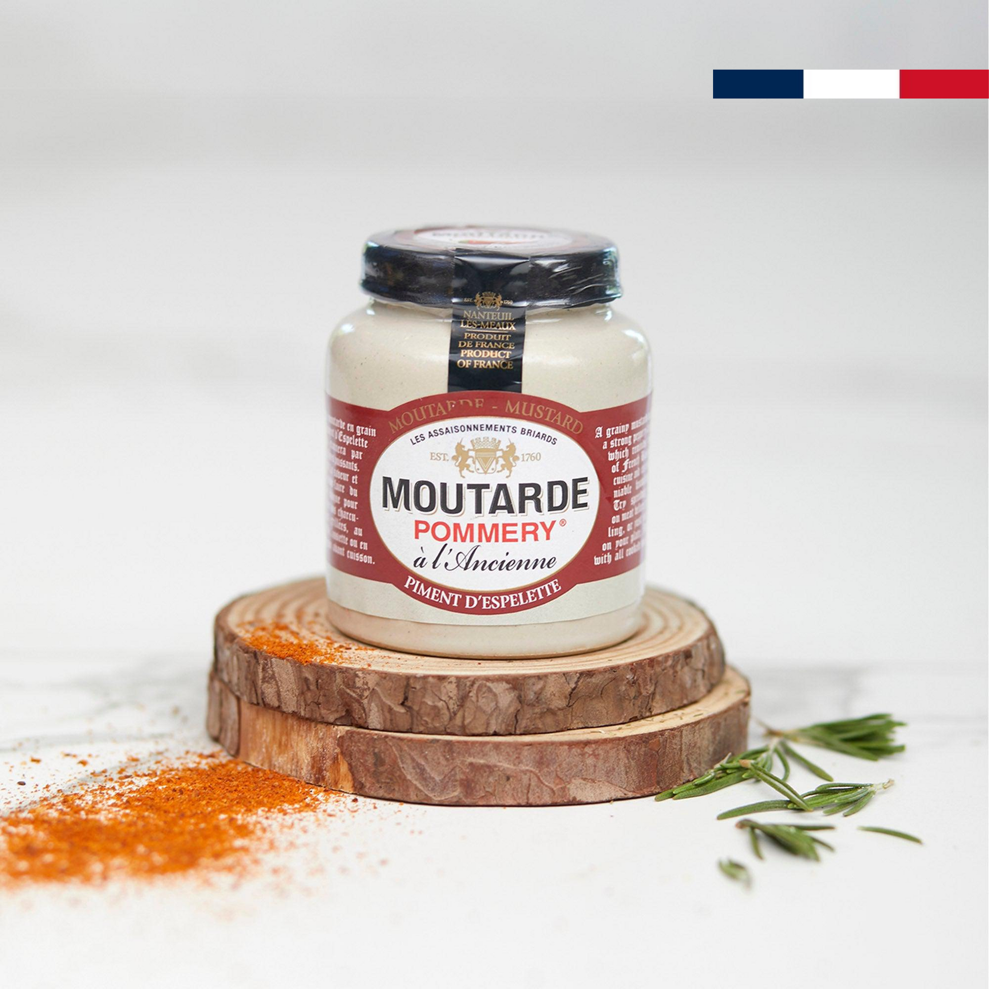 Sabrosa y fragante, la mostaza a la pimienta de Espelette Pommery es la garantía de un sabor directamente del País Vasco. Sus aromas potentes, ligeramente afrutados y especiados, te transportarán a una de nuestras regiones más bellas.