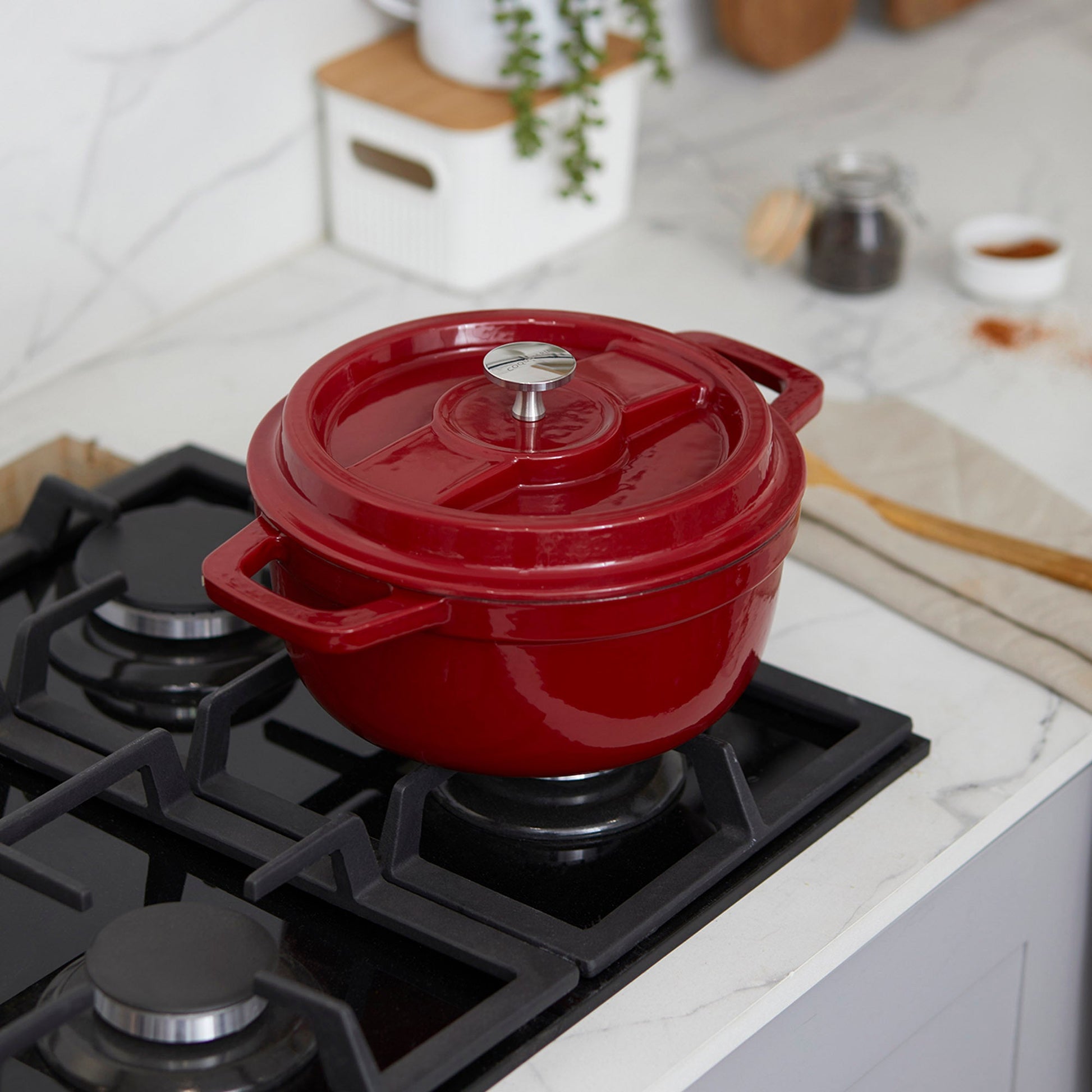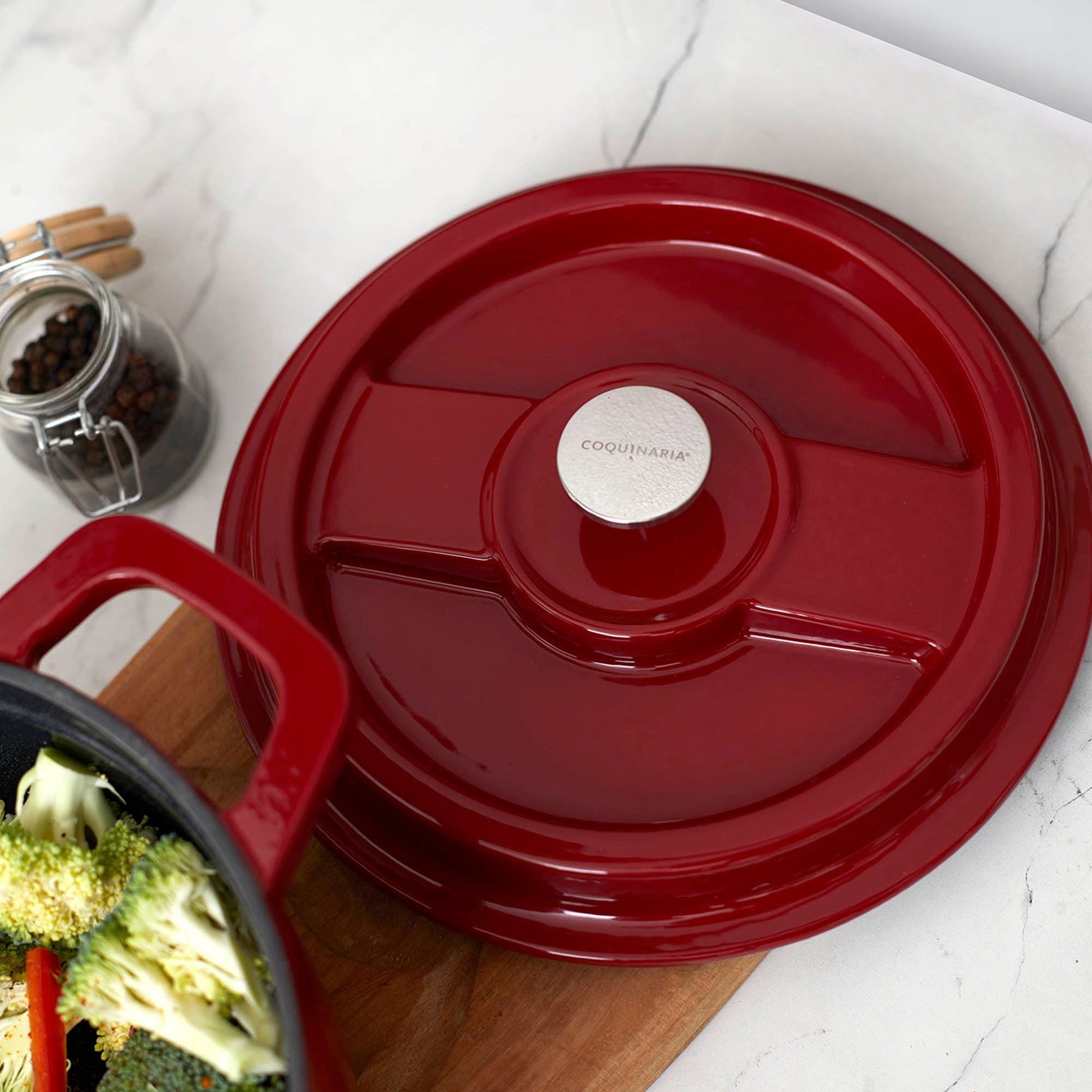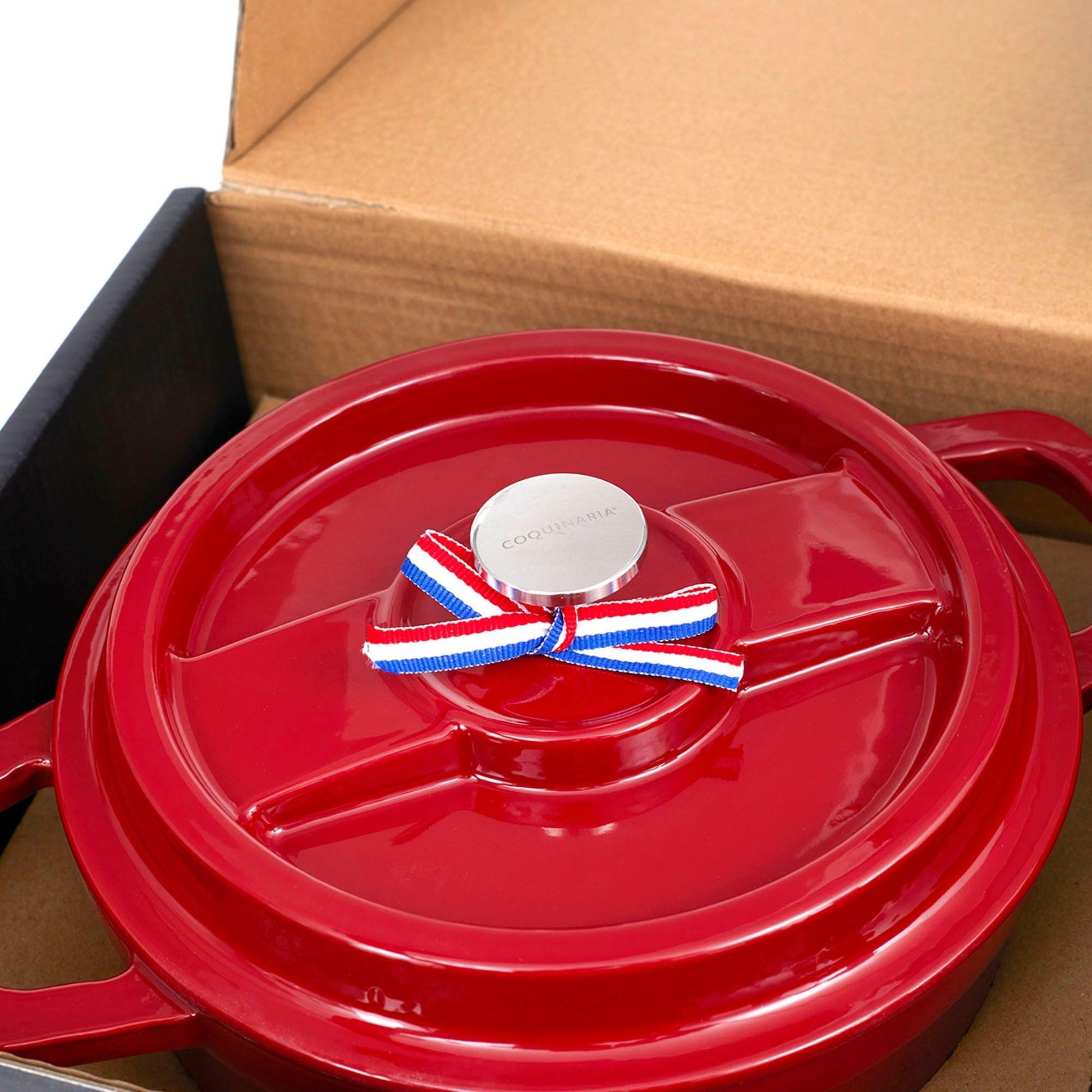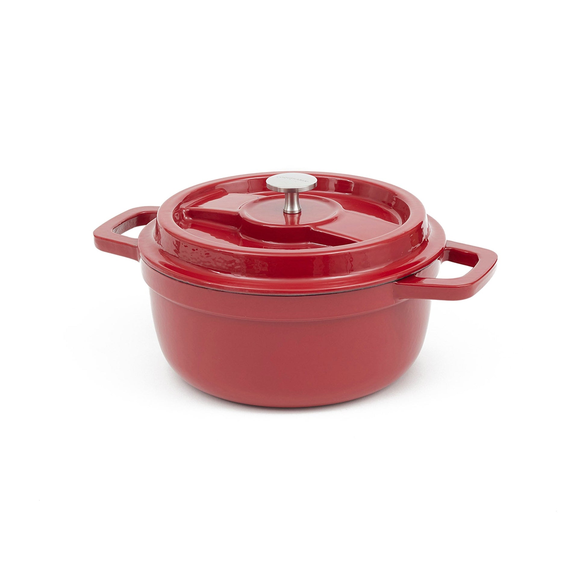 Descubre el arte de la cocina con la Olla de Hierro Fundido 2.9 Litros Coquinaria. Su diseño redondo y robusto, garantiza una distribución uniforme del calor para cocciones perfectas, manteniendo los alimentos calientes por más tiempo. Su interior esmaltado negro preserva los sabores y facilita la limpieza, mientras que su exterior rojo aporta un toque de elegancia a tu cocina. Ideal para guisos, estofados y preparaciones a fuego lento, esta olla es una inversión duradera que realza el sabor y la textura de cada plato.