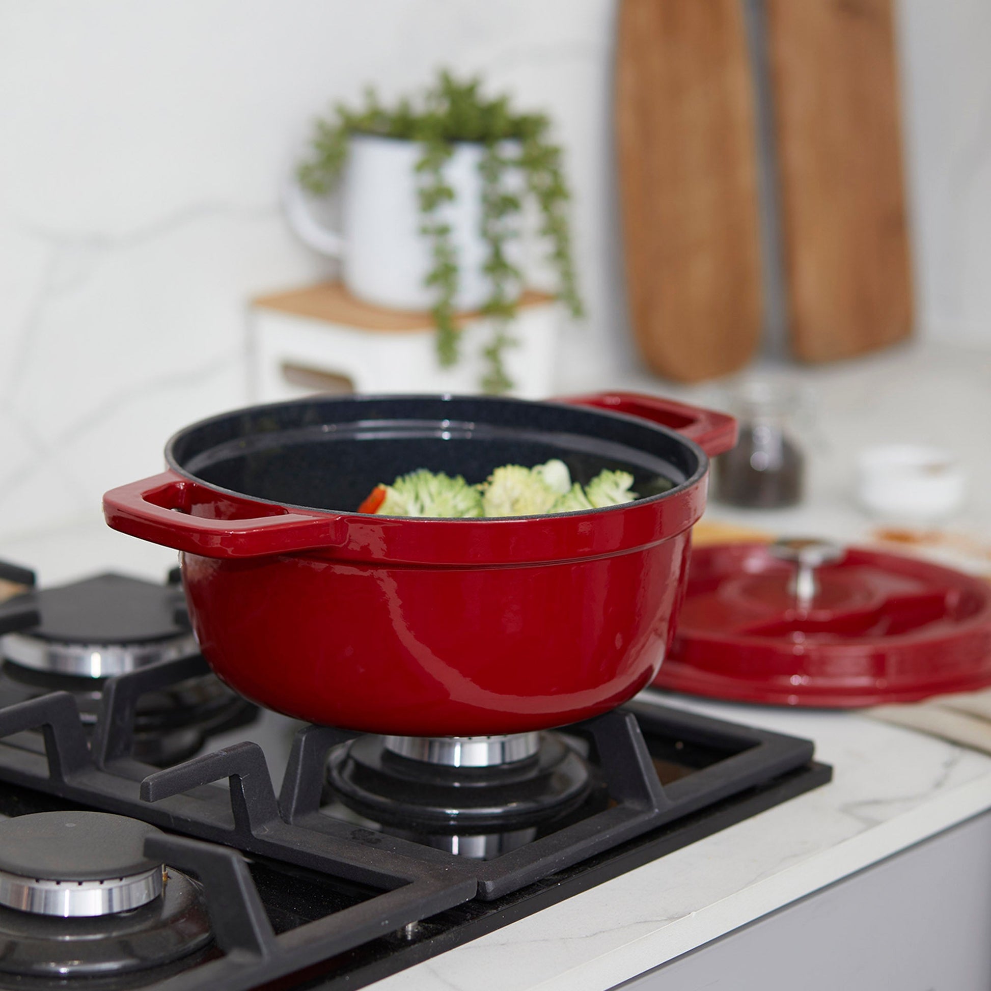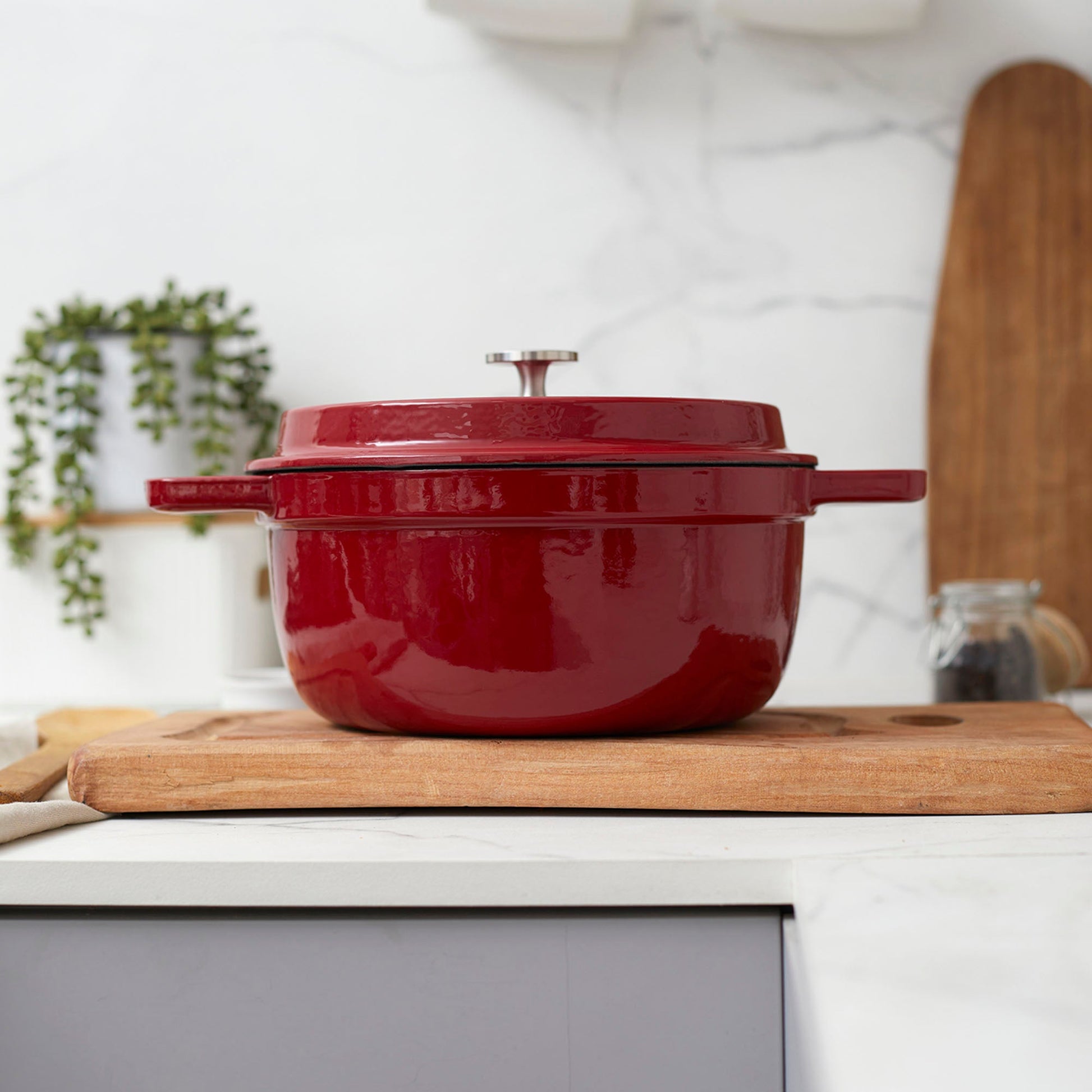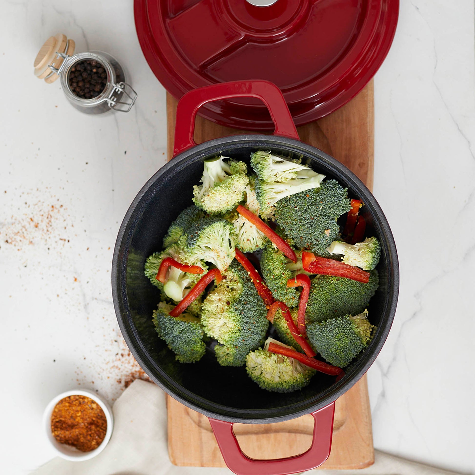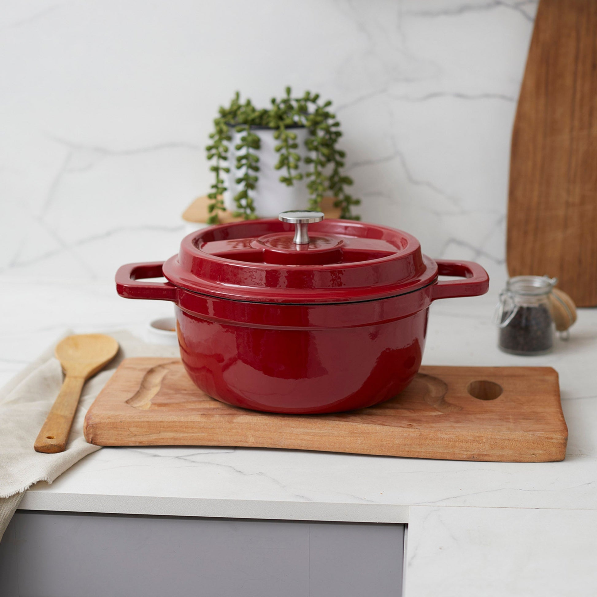 Descubre el arte de la cocina con la Olla de Hierro Fundido 2.9 Litros Coquinaria. Su diseño redondo y robusto, garantiza una distribución uniforme del calor para cocciones perfectas, manteniendo los alimentos calientes por más tiempo. Su interior esmaltado negro preserva los sabores y facilita la limpieza, mientras que su exterior rojo aporta un toque de elegancia a tu cocina. Ideal para guisos, estofados y preparaciones a fuego lento, esta olla es una inversión duradera que realza el sabor y la textura de cada plato.