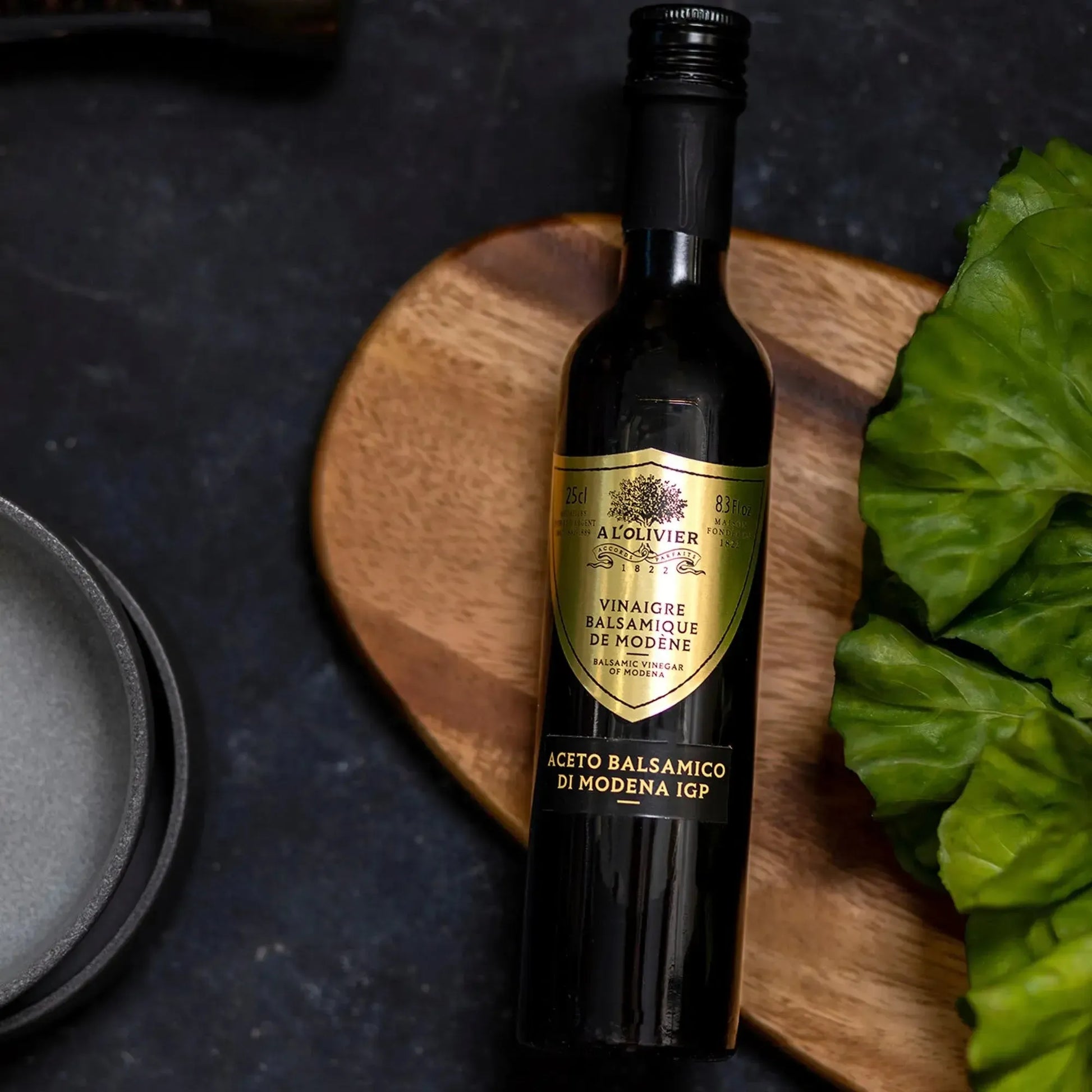 Descubre la esencia de la tradición con nuestro vinagre balsámico, elaborado con más del 25% de mosto de uva cocido, cuidadosamente seleccionado de las mejores variedades: Lambrusco, Sangiovese, Trebbiano, Albana, Ancellotta, Fortana y Montuni. Cada gota refleja la riqueza y profundidad de los viñedos italianos, ofreciendo un equilibrio perfecto entre dulzura y acidez. Ideal para realzar ensaladas, carnes, quesos o incluso postres, llevando cada plato a un nivel superior de sofisticación.