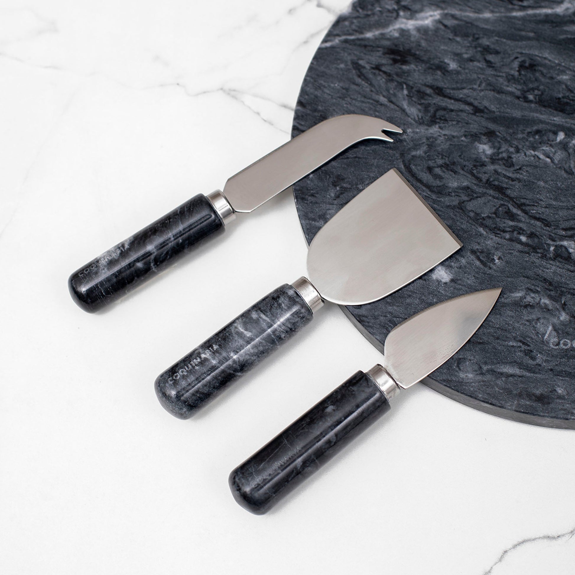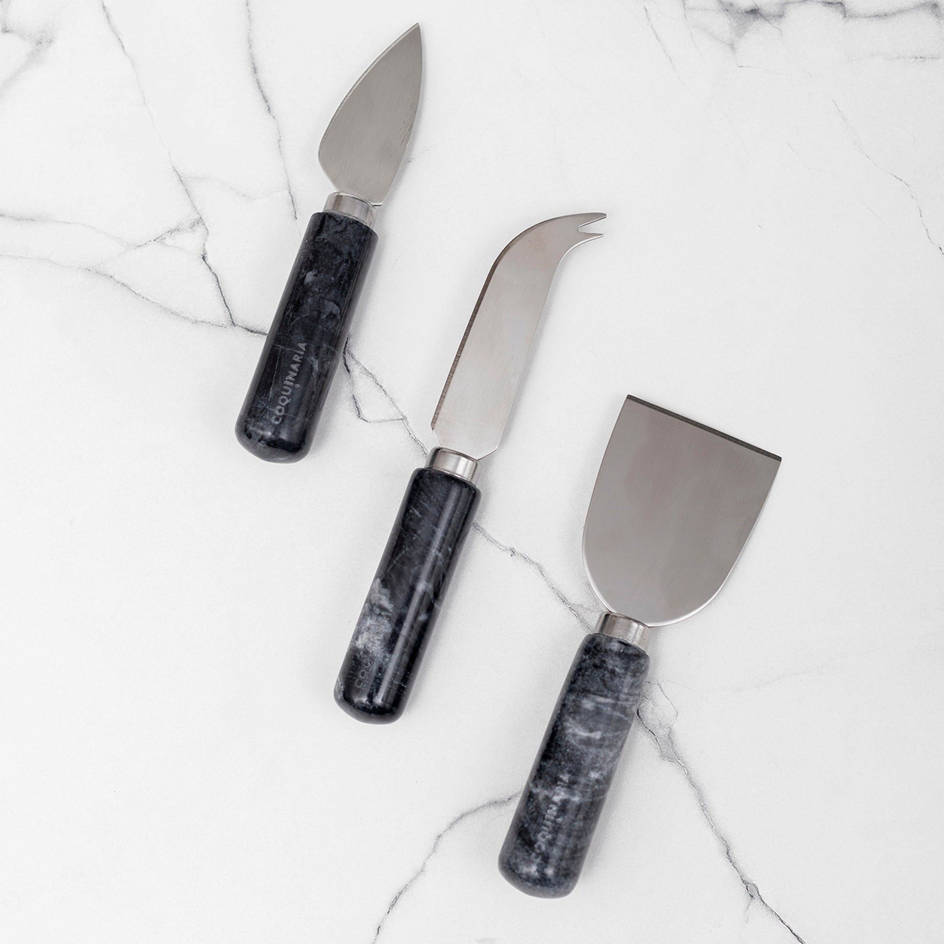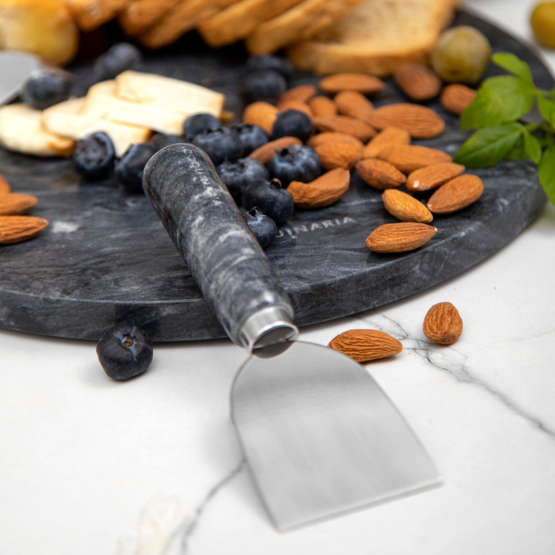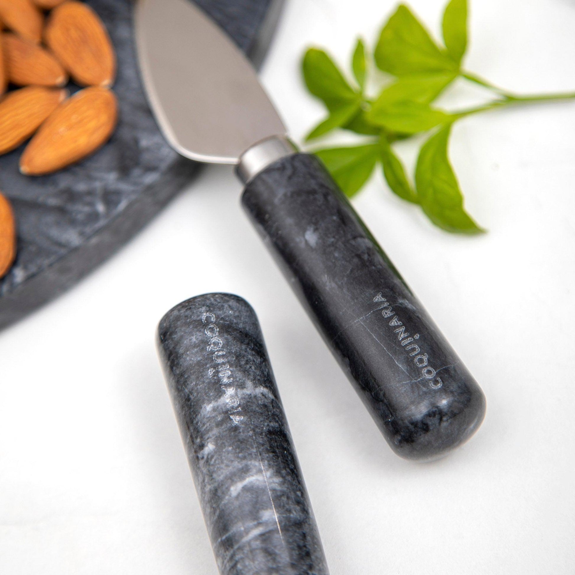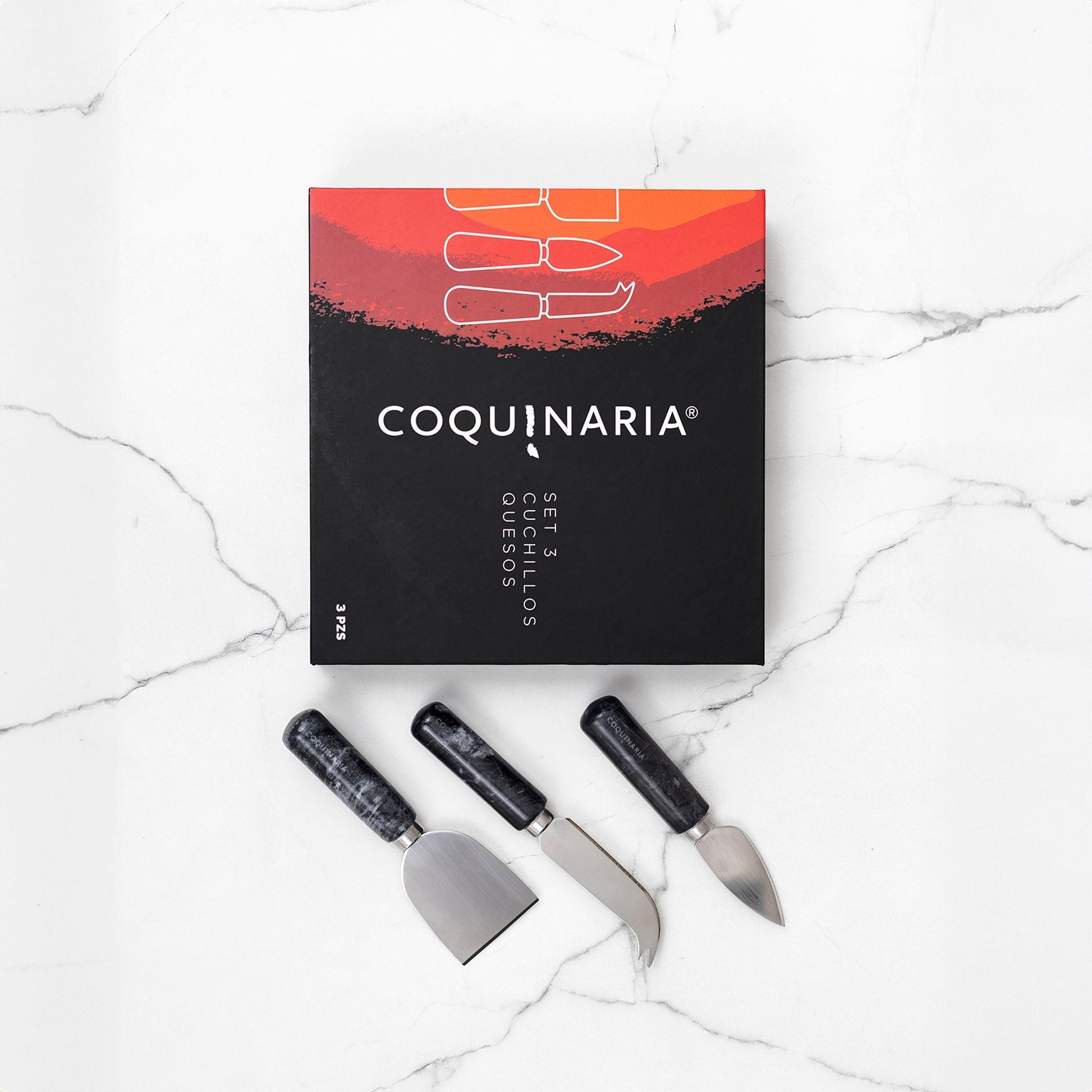 El set de cuchillos de aperitivo de mármol color negro Coquinaria es ideal para servir quesos, embutidos y otros aperitivos con estilo y precisión. Cada cuchillo tiene una hoja afilada y un elegante mango de mármol, proporcionando un agarre cómodo y estético. Perfecto para reuniones, asados y cenas, este set combina funcionalidad y diseño, aportando un toque de sofisticación a la hora de presentar y cortar alimentos.