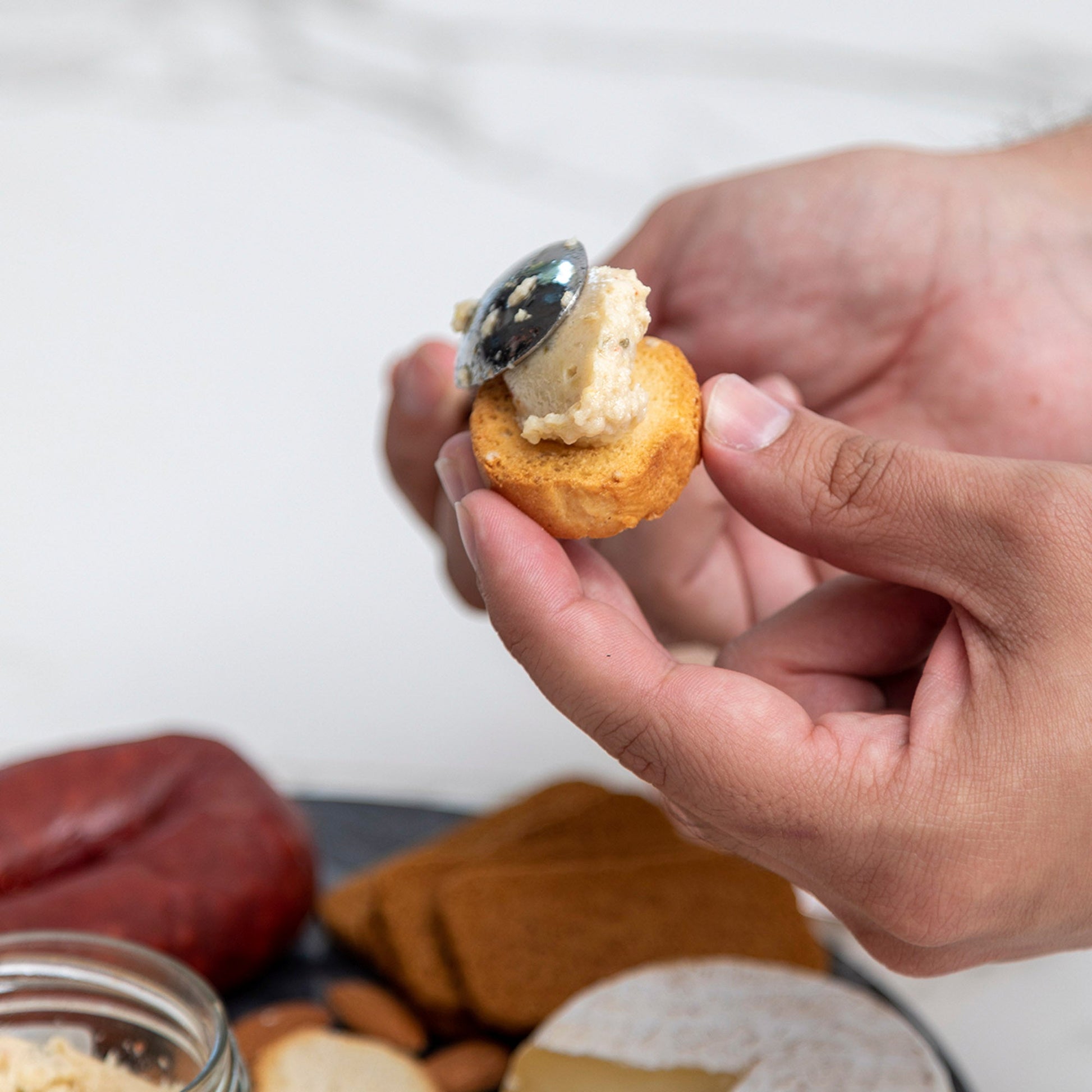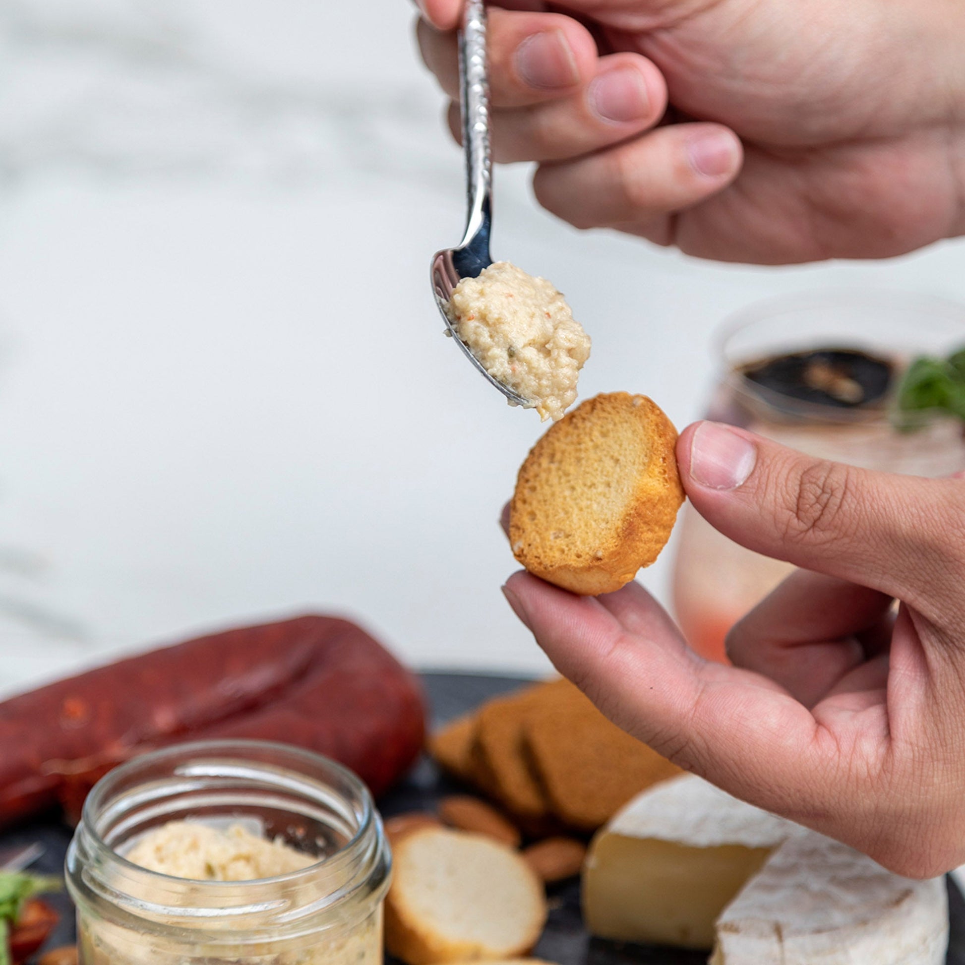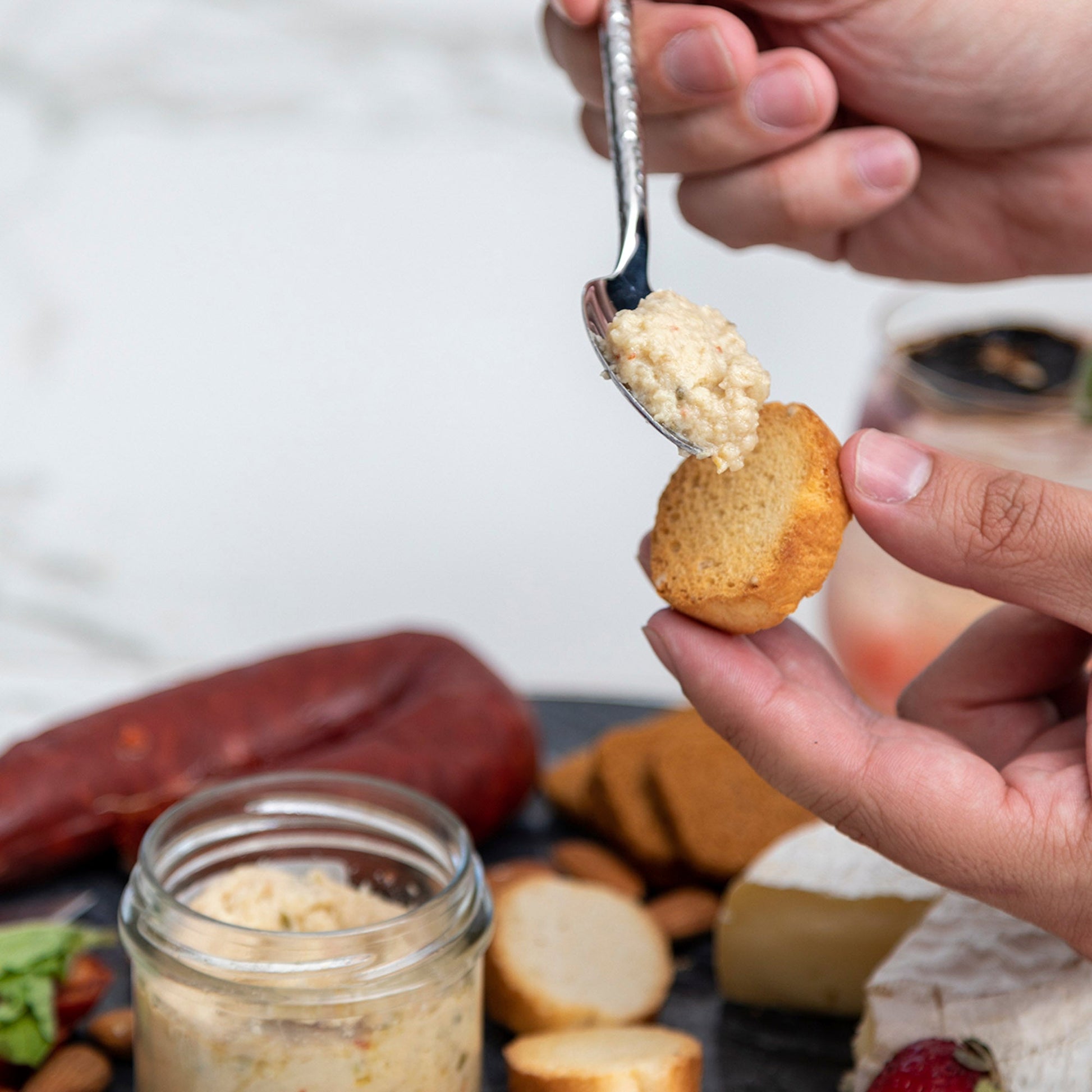 La delicadeza del queso fresco se equilibra con el sutil amargor de la alcachofa, el vigor del jugo de limón y la riqueza del aceite de girasol. Cada trozo revela un carácter único gracias a las notas aromáticas del cebollin y el toque especiado del pimiento de Espelette.