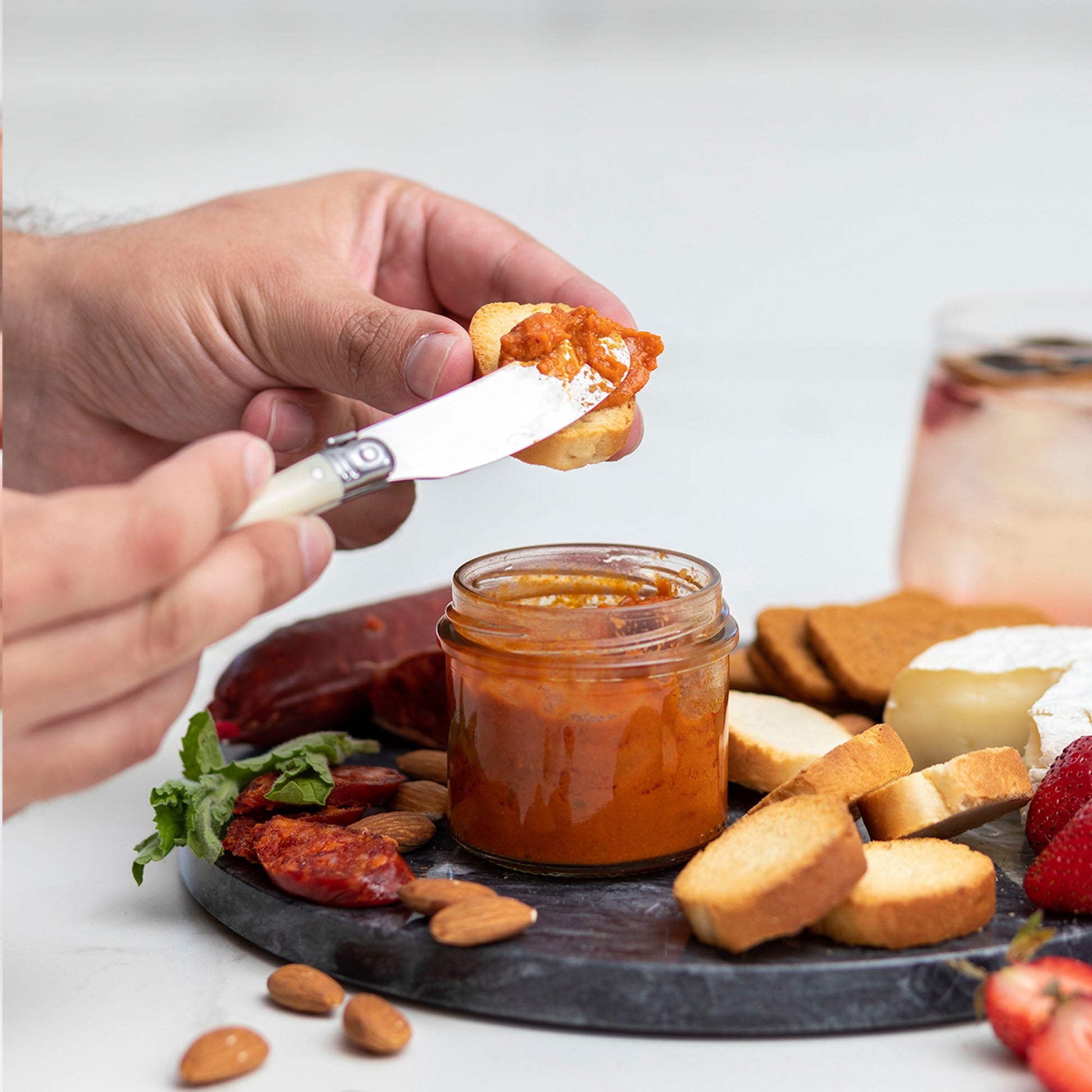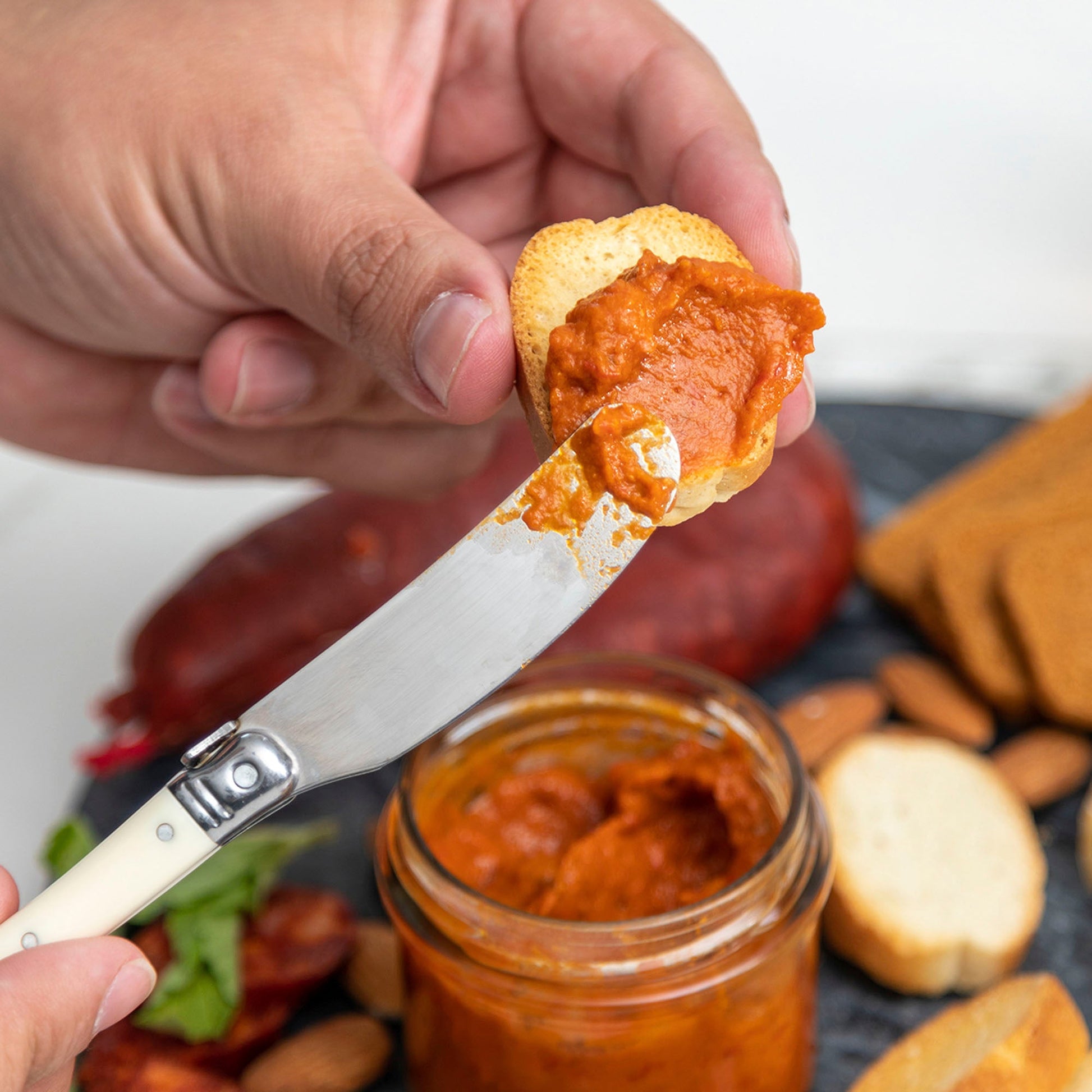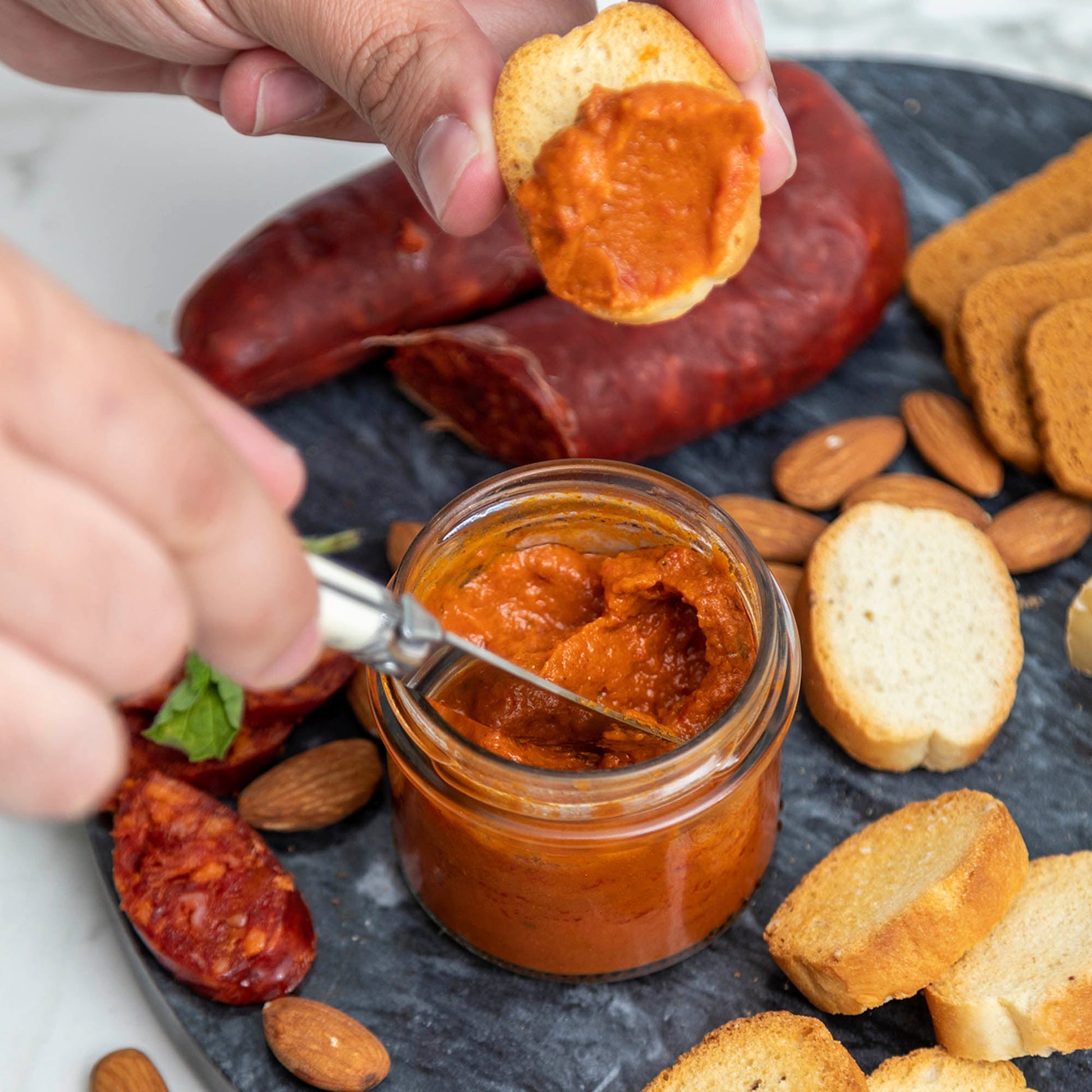 Enriquecida con el dulzor del azúcar moreno y la profundidad del vinagre balsámico, esta crema se convierte en un deleite irresistible. Su textura cremosa y su color rojo anaranjado no solo seducen al paladar, sino también a la vista, evocando la calidez de las puestas de sol y la alegría de los encuentros mediterráneos.